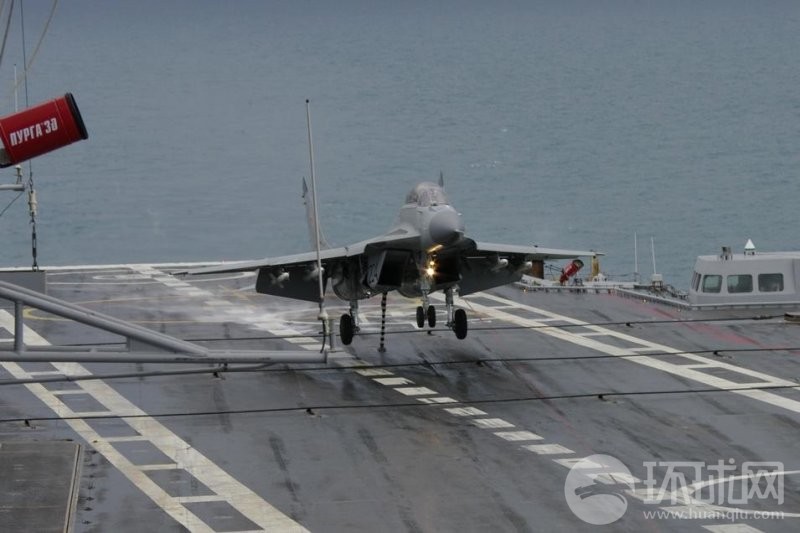 從甲板上拍攝到的艦載機(jī)在維克拉馬蒂亞號(hào)上降落的場(chǎng)景