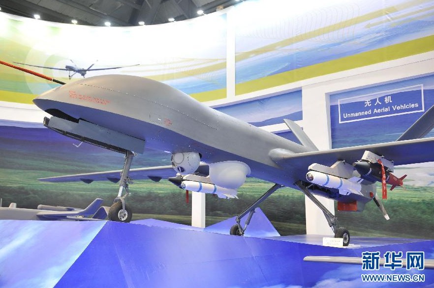 這是珠海航展上展出的彩虹4(CH-4)無人機(jī)系統(tǒng)(11月14日攝)。新華社記者 梁旭 攝