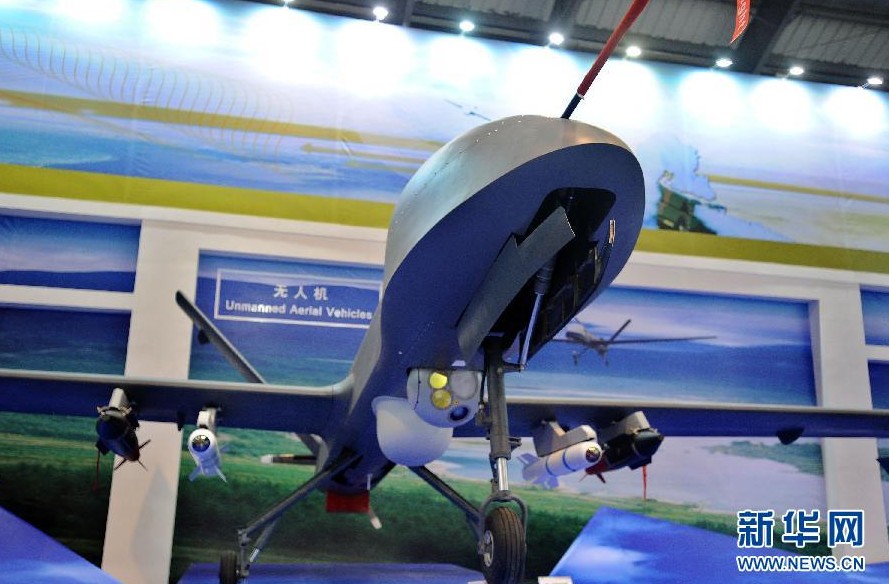 這是珠海航展上展出的彩虹4(CH-4)無(wú)人機(jī)系統(tǒng)(11月14日攝)。新華社記者 劉大偉 攝