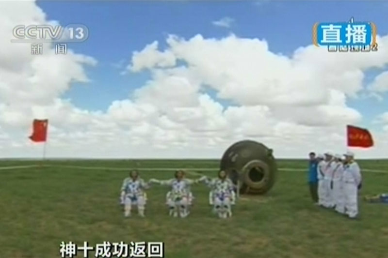 3名航天員順利出艙,手拉手致意。(視頻截圖)