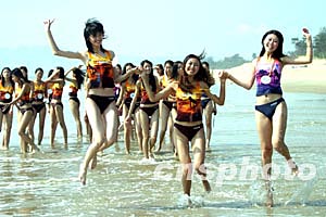 十月十三日,來自全國(guó)各地的數(shù)十名參加第九屆“模特之星”大賽的參賽模特,在廣東汕頭美麗的海灘上進(jìn)行排練,展示美麗身姿。 十月十四日晚,選手們?cè)趶V州汕頭花園賓館內(nèi)進(jìn)行首次個(gè)人才藝演練。