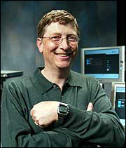 中新網(wǎng)1月10日電 微軟董事長(zhǎng)比爾·蓋茨周三在拉斯維加斯的國(guó)際消費(fèi)電子品展覽上展示了他佩帶的手表,吹捧展出的多種“聰明”手表與便攜式視頻游戲機(jī),表示小件電子消費(fèi)品有著美好的前景。