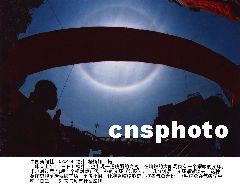 中新網(wǎng)1月14日電 1月6日,吉林省靖宇縣上空出現(xiàn)了兩輪太陽(yáng)在天空中交相輝映的奇景,兩個(gè)太陽(yáng)相距不是很遠(yuǎn),肉眼看上去都十分刺眼,而且一輪太陽(yáng)的旁邊還出現(xiàn)了一道亮麗的彩虹。