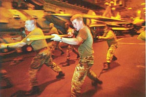1991年海灣戰(zhàn)爭,美投入軍力近55萬,此外還有20多萬盟軍。目前美軍認(rèn)為戰(zhàn)端一開,除巴格達(dá)周圍的十幾萬共和國衛(wèi)隊(duì)會拼死抵抗外,伊軍不會有效抵抗。對于美軍出動(dòng)多少地面部隊(duì)目前還有爭議。國防部長拉姆斯菲爾德主張先投入7萬兵力,必要時(shí)再增兵;軍方認(rèn)為這是冒險(xiǎn),主張一次投入20多萬兵力,從氣勢上壓倒對方。