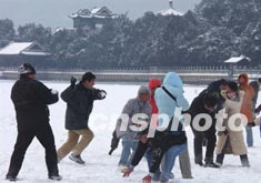 北京一月十八日清晨被小雪披上銀裝,一群年青人歡聚昔日皇家園林,展開(kāi)一場(chǎng)男女雪戰(zhàn),好不快活。作者:賈國(guó)榮