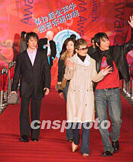 第九屆全球華語音樂榜中榜頒獎(jiǎng)典禮十九日晚在上海舉行,眾多內(nèi)地及港臺(tái)藝人的出席使得這屆有史以來規(guī)模最大的華人音樂評(píng)選盛會(huì)星光閃耀。圖為在頒獎(jiǎng)盛典之前,香港著名藝人梅艷芳等走過紅地毯鋪就的星光大道進(jìn)入會(huì)場。作者:姜煜