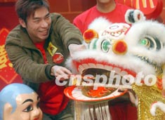 香港歌手許志安一月二十日出席“麥當(dāng)勞TM新年開心成雙”醒獅點(diǎn)睛儀式。錢興強(qiáng) 攝