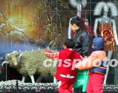 圖:“羊模特”走進(jìn)北京商家櫥窗