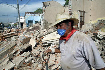 21日晚發(fā)生在墨西哥中西部地區(qū)的里氏7.6級強(qiáng)烈地震,已造成至少28人死亡,400人受傷。距首都墨西哥城760公里的科利馬州許多房屋損毀,受損情況嚴(yán)重。