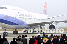 臺灣中華航空公司包機返鄉(xiāng)的客機二十六日清晨飛抵上海浦東機場(1)作者:張宇