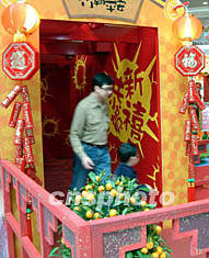 香港一對(duì)父女,周日在愉景新城電動(dòng)爆竹廊中玩樂,感受新年熱鬧氣氛。洪少葵 攝