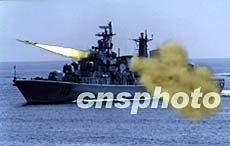 中央軍委授予海軍哈爾濱艦“海上先鋒艦”榮譽稱號命名大會二十六日在青島某軍港舉行。海軍哈爾濱艦是中國國產(chǎn)某新型導(dǎo)彈驅(qū)逐艦首艦。圖為哈爾濱艦發(fā)射反艦導(dǎo)彈。作者:王松岐