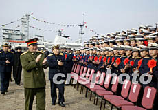 中央軍委授予海軍哈爾濱艦“海上先鋒艦”榮譽稱號命名大會二十六日在青島某軍港舉行。總政治部、海軍及艦隊領(lǐng)導(dǎo)看望哈爾濱艦官兵。作者:王松岐
