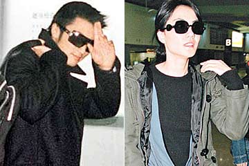 王菲離港后約3小時,謝霆鋒便偕同父親謝賢以全黑父子裝抵達機場,兩人共帶4個行李,期間謝霆鋒顯得心情很漂亮,還手持具拍照功能的Nokia3650手機拍攝在場記者,并得意洋洋地向父親展示其"杰作"說:"這張不錯。"
