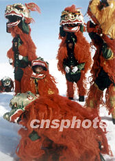 駐守新疆雪域高原的解放軍官兵在冰天雪地舞獅鬧春,春節(jié)喜慶的氣氛洋溢在邊關(guān)軍營。作者:馬林