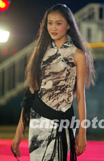 身著著名設(shè)計師房瑩新款時裝的模特,新春佳節(jié)在海南三亞亞龍灣上演時裝秀。作者:毛建軍