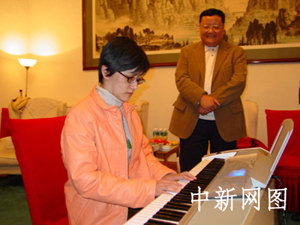 餐畢,海若在家人的攙扶下走上二樓會(huì)客廳。廳中央放著一架嶄新的電子鋼琴,6歲的小外甥女跑過(guò)去彈奏起來(lái),海若馬上表示:“喔,鋼琴?我也會(huì)!彼S即坐到鋼琴前,雙手流暢地彈了起來(lái)。