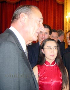 下午五點四十五分左右,希拉克興致勃勃來到招待會大廳,并對見到老熟人、中國駐法大使吳建民感到十分高興。他說,今年是中國羊年,羊年是一個吉利的年份。他向法國的華僑華人致以節(jié)日的祝賀。