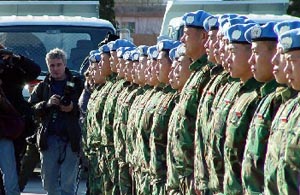 關(guān)于此次中國工兵連赴剛果民主共和國參與維和行動,戴大校介紹說,應(yīng)聯(lián)合國要求,2002年12月,中國決定向聯(lián)合國剛果民主共和國維和行動第三階段部署派出一個(gè)175人的工兵連和一個(gè)43人的醫(yī)療分隊(duì)。目前各項(xiàng)準(zhǔn)備工作已基本就緒,工兵連和醫(yī)療分隊(duì)正整裝待發(fā)。他們的主要任務(wù)是修筑工路、橋梁,修建機(jī)場,維修營房,救治聯(lián)合國維和行動的傷病人員。