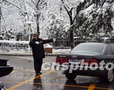 一場(chǎng)冷雨之后,十一日紛飛的大雪籠罩了南京城。為了保障市內(nèi)交通順暢,交巡警上路值勤,指揮交通。作者:丁東升