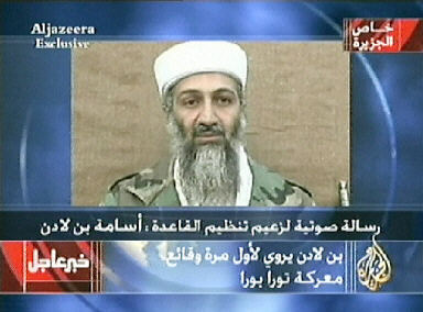 據(jù)報道,在11日晚間正常播放節(jié)目期間,半島電視臺的電視屏幕下方打著這樣一個標題:“‘基地’組織領(lǐng)導(dǎo)人奧薩馬·本·拉登號召所有穆斯林團結(jié)起來,共同保衛(wèi)伊拉克人民,半島電視臺將于稍晚時候播放一段錄音。”