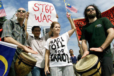 在泰國,5000多名泰國各界民眾在曼谷舉行聲勢浩大的反戰(zhàn)示威,強烈反對美國企圖對伊拉克發(fā)動戰(zhàn)爭。