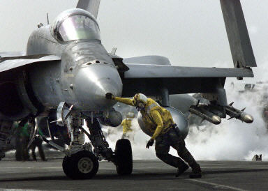 F/A-18“超級黃蜂”(SuperHornet)艦載多用途超音速戰(zhàn)斗機(jī),由美國麥克唐納·道格拉斯公司制造,1995年首次飛機(jī),裝備于“林肯”(USS Abraham Lincoln)號核動力航空母艦。