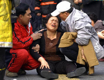 韓國警方表示,韓國當(dāng)?shù)貢r(shí)間18日上午9:55韓東南部城市大丘發(fā)生地鐵縱火事件,造成百余人傷亡。圖為遇難者家屬痛哭欲絕。