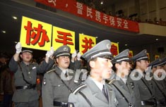 北京西城警方二月十八日舉行“兩會”保衛(wèi)誓師大會,來自公安、武警、工商、城管、保安等相關(guān)部門的兩千余人參加了大會。作者:任海霞