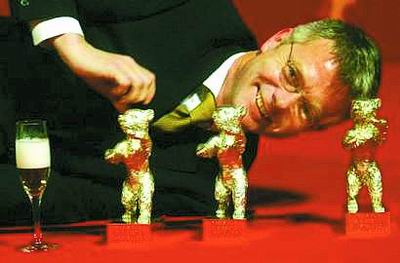 這次中國電影還是有收獲的,張藝謀捧得了“阿爾弗雷德·鮑爾(柏林電影節(jié)創(chuàng)辦人)大獎(jiǎng)”。據(jù)透露,《英雄》未捧“熊”,跟本屆評委會(huì)主席伊戈揚(yáng)偏愛人性題材的個(gè)人風(fēng)格頗有關(guān)系。另一部由李楊編導(dǎo)描寫中國北方某礦區(qū)一起案件的《盲井》獲藝術(shù)貢獻(xiàn)銀熊獎(jiǎng)。