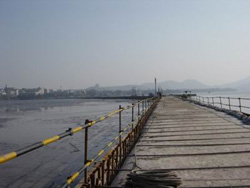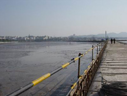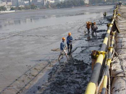 據(jù)中廣網(wǎng)報道,圍堰兩邊是截然不同的風(fēng)景:一邊是碧波蕩漾,游船點點的秀麗西湖;一邊是湖底黑色的淤泥。中間圍堰有兩米多寬,全部用沙袋壘成,兩邊用鋼質(zhì)構(gòu)件固定,十分牢固。兩側(cè)水位的落差有三四米。抽干的湖底呈橢圓型,有幾臺小型水泵仍在工作,抽出從地下滲出的湖水。