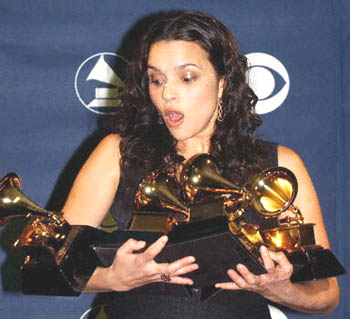 中新網(wǎng)2月24日電 美國國家唱片錄音藝術(shù)科學(xué)學(xué)院舉辦的第四十五屆格萊美獎今天揭曉,23歲的新人諾拉瓊斯(Norah Jones)抱走年度最佳唱片、年度最佳歌曲等共計八座大獎。搖滾老將布魯斯史普林斯汀以《躍升》專輯獲最佳搖滾專輯等三獎。狄克西女子三人組也贏得了四座獎項。