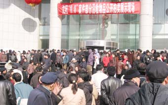 今天,為期六天的“慕馬腐敗大案”贓物拍賣預覽落幕,估計共有近十萬沈陽市民趕到展出現(xiàn)場“金劍大廈”,涌進面積不大的幾個展廳,可以用“人潮洶涌、比肩接踵、絡(luò)繹不絕”來形容,人數(shù)之多大大超出舉辦者的意料。