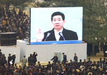 據(jù)美聯(lián)社消息,56歲的盧武鉉在漢城國會外的廣場宣誓就職。應邀觀禮的200多名外國政要包括中國副總理錢其琛、日本首相小泉純一郎和美國國務卿鮑威爾。
