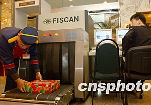 三月一日,在全國政協(xié)委員入住的北京友誼賓館,工作人員正在對進入賓館的物品進行安全檢查。作者:張煒