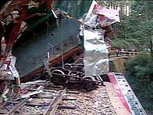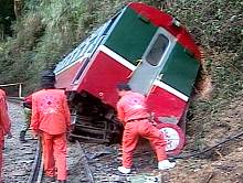 據(jù)島內(nèi)東森新聞報(bào)道,編號(hào)為110班次的小火車,昨日下午2時(shí)許在接近神木站前鐵橋前,突然失控撞山,有2節(jié)車廂懸空掛在鐵橋上,1節(jié)車廂直接摔落五、六公尺深的山谷。