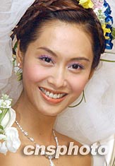 香港藝員朱茵三月四日在香港“現(xiàn)代經(jīng)典”影樓拍攝主題為“花團錦簇”的婚紗晚裝。錢興強 攝