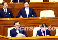 香港政務(wù)司、律政司等列席財(cái)政預(yù)算案.香港政務(wù)司長曾蔭權(quán)、律政司長梁愛詩等政府高官,3月5日列席立法會(huì)聽取財(cái)政司司長梁錦松提交2003至2004年度財(cái)政預(yù)算案。洪少葵 攝