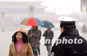三月六日清晨北京瑞雪紛飛,參加十屆人大一次會議第二次全體會議的政協(xié)委員和人大代表冒雪赴會。作者:盛佳鵬
