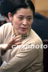 全國政協(xié)委員、電視主持人倪萍在七日的分組討論會(huì)上呼吁關(guān)注農(nóng)村普教問題,對(duì)貧困山區(qū)發(fā)放“教育券”來保障教育資金的?顚S谩W髡:廖文靜