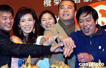為慶祝《洗》劇首周有平均33點(diǎn)高收視率,昨日眾演員以雞及乳豬還神,又為雞只“驗(yàn)尸”檢查死因,蔡子健打趣說,其中一只是給“阿佘”開車撞死的,所以罰她停牌。對(duì)于自己又成為開玩笑對(duì)象,“阿佘”毫不介意地說:“因?yàn)槲也粫?huì)報(bào)仇,好欺負(fù)嘛!”