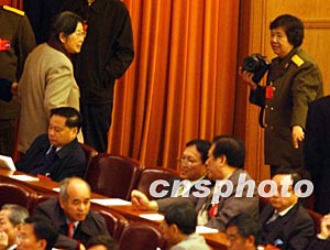 三月十四日,毛澤東主席的兒媳婦邵華請(qǐng)毛主席的女兒李敏,在全國(guó)政協(xié)十屆一次會(huì)議閉幕式上拍照留影。邵華新近當(dāng)選為中國(guó)攝影家協(xié)會(huì)主席。作者:賈國(guó)榮