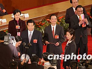 握手、鞠躬、揮手致意。肩負(fù)著歷史重任的中國新領(lǐng)導(dǎo)人以不同的方式表達(dá)著對(duì)人民代表的衷心感謝。