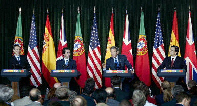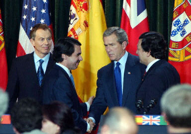 美國總統(tǒng)布什、英國首相布萊爾、西班牙首相阿斯納爾和葡萄牙總理巴羅佐16日在亞速爾群島舉行首腦會議。布什在會后表示,17日是重要時刻,是為解決伊拉克危機(jī)所作外交努力的最后期限。