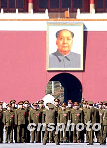 三月十七日在北京天安門廣場(chǎng)的大好春光里,全國(guó)人大解放軍代表團(tuán)在參加十屆全國(guó)人大一次會(huì)議第七次全體會(huì)議投票前合影。作者:賈國(guó)榮