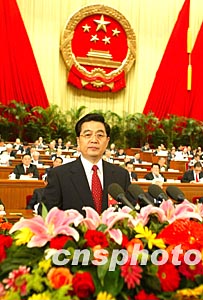 十屆全國(guó)人大一次會(huì)議十八日在北京人民大會(huì)堂閉幕,國(guó)家主席胡錦濤發(fā)表講話。作者:毛建軍