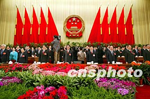 十屆全國(guó)人大一次會(huì)議十八日在國(guó)歌聲中閉幕。作者:毛建軍