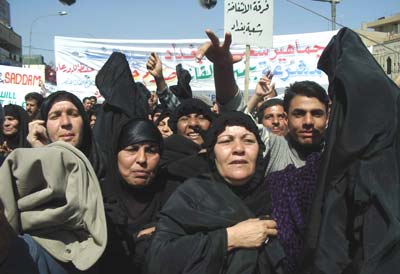 在戰(zhàn)爭(zhēng)中死去親人們的母親們也上街支持薩達(dá)姆。(春風(fēng))