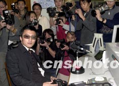歌星謝霆鋒3月18日出席香港電臺(tái)節(jié)目"娛樂滿天星"訪問(wèn),吸引大批記者在直播室采訪拍照。鄧慶樂 攝