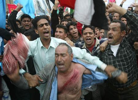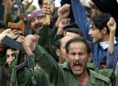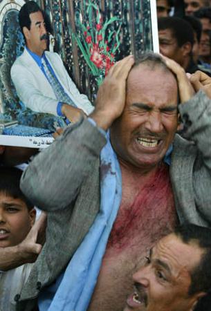 中新網(wǎng)3月19日電 當?shù)貢r間3月18日,巴格達街頭爆發(fā)了大規(guī)模的抗議美軍入侵伊拉克的集會。由于薩達姆拒絕了美國的最后通牒,戰(zhàn)爭一觸即發(fā)。(春風)
